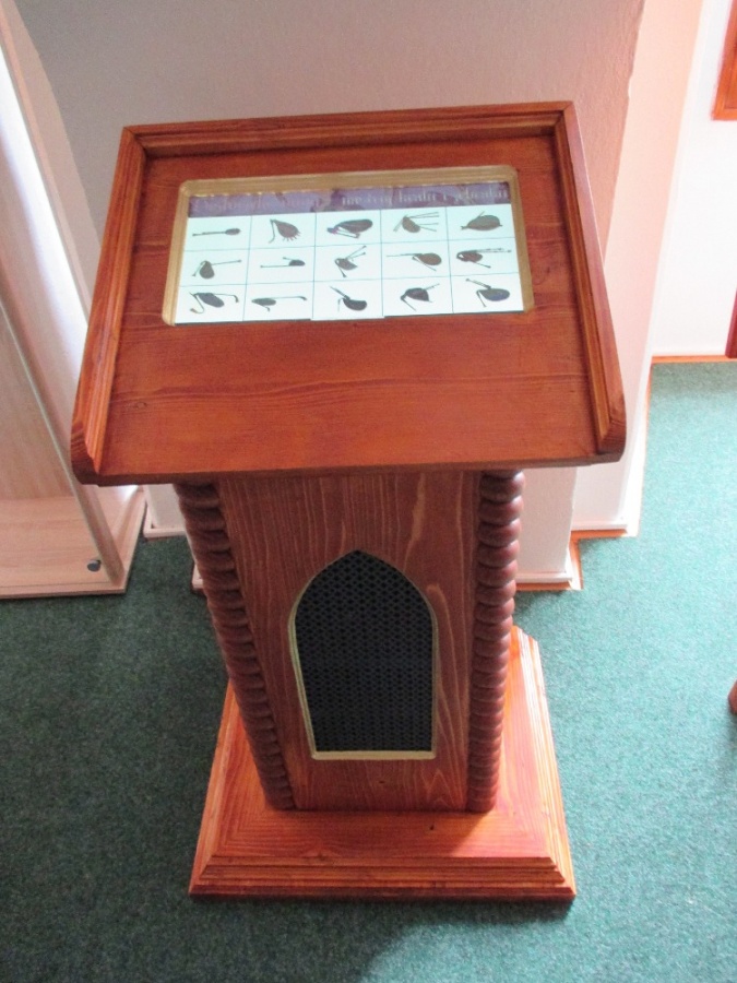 Součástí výstavy je interaktivní dřevěný stylizovaný prvek ve tvaru středověkého klášterního čtecího zařízení – pulpit. Má dotykovou obrazovku, audiosystém a integrovaný počítač, kde jsou nahrávky všech vystavovaných nástrojů.
